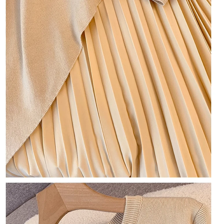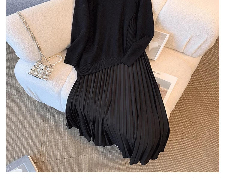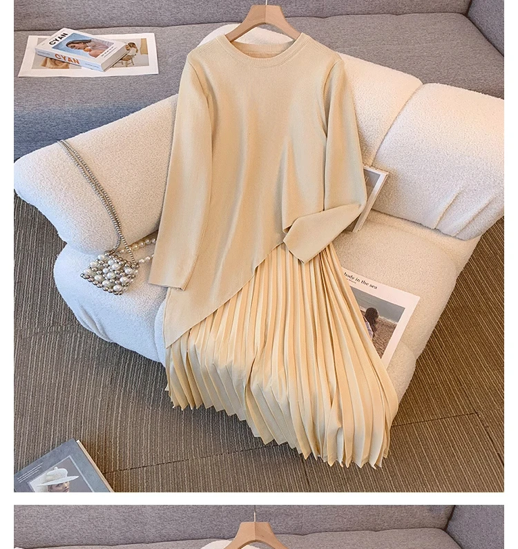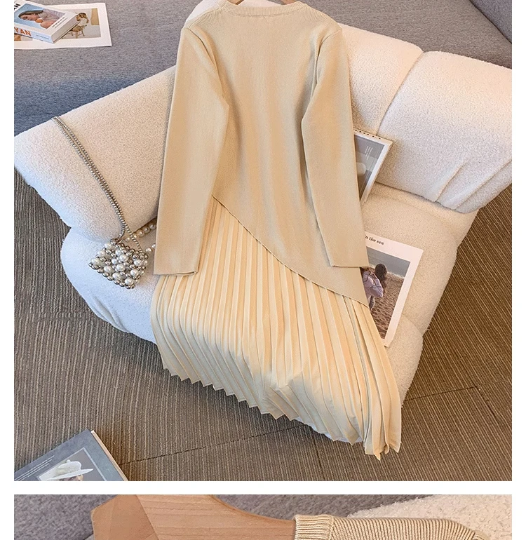 1206h Fashionable Patchwork Pleated Skirt For Women 4xl Spring Casual Loose Round Neck Long Sleeved Soft Outdoor Female Dresses